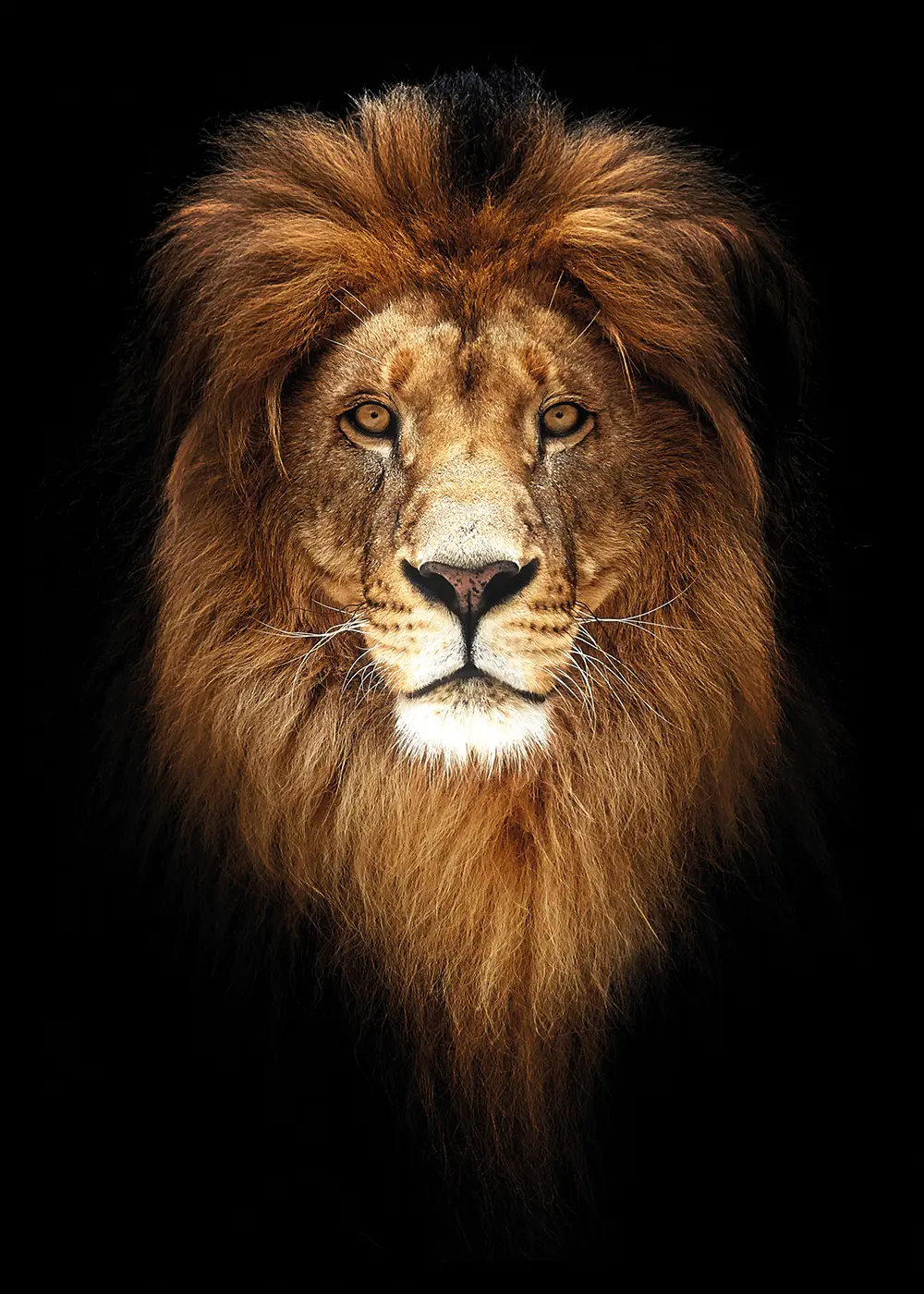 Een imposant zwart-wit portret van een leeuw, gevangen in glas. Het contrast tussen de donkere manen en heldere achtergrond maakt dit kunstwerk zowel krachtig als elegant. Wordt rechtstreeks vanuit de leverancier verzonden; hierdoor kan de levertijd iets langer zijn dan standaard.