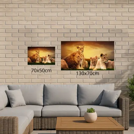 Het Leeuwenfamilie schilderij brengt kracht, harmonie en een stukje natuur naar je buitenruimte. De combinatie van majestueuze leeuwen en de warme gezinsband zorgt voor een inspirerende en troostrijke sfeer. Door de duurzame materialen blijft het schilderij ook bij wisselvallig weer prachtig.