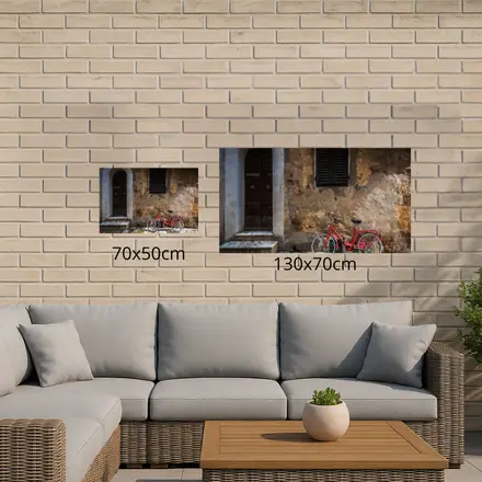 Het Rode Fiets schilderij brengt een vleugje romantiek en kleur in je buitenruimte. De afbeelding van de rode fiets roept herinneringen op aan ontspannen fietstochten en zomerse dagen. Dankzij de duurzame materialen blijft het schilderij lang mooi, ook bij wisselvallig weer.