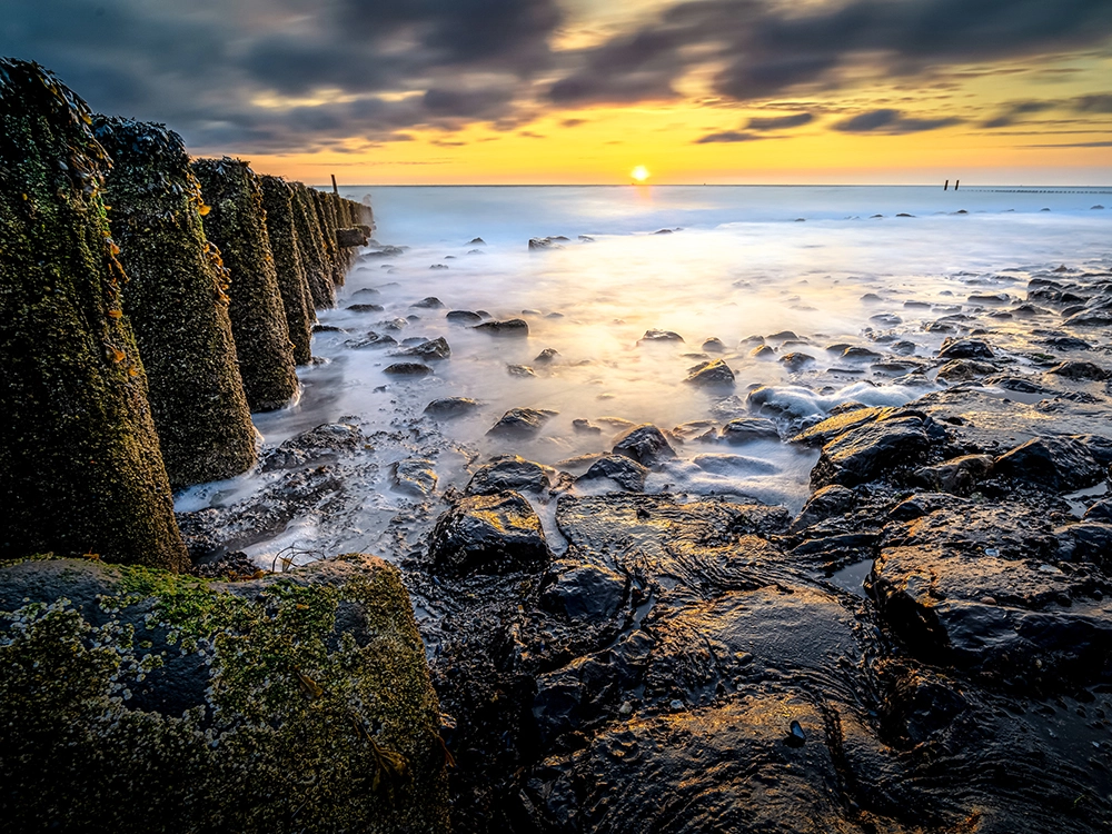 Alexsar Art Tuinschilderij strand palen 70x50cm