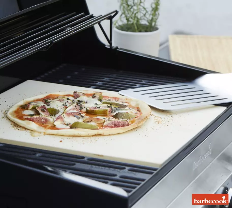 Met deze rechthoekige plaat kan je een grote pizza of twee kleine pizza's tegelijkertijd bereiden. Zodra je jezelf een ware pizzabaker vindt kan je ook nog gaan variëren met deze pizzasteen. Je kan namelijk niet alleen pizza's bakken maar ook croissants, tortilla's of zelfs brood! Nieuwe gerechten uitproberen op de barbecue is altijd leuk, dus varieer er lekker op los.