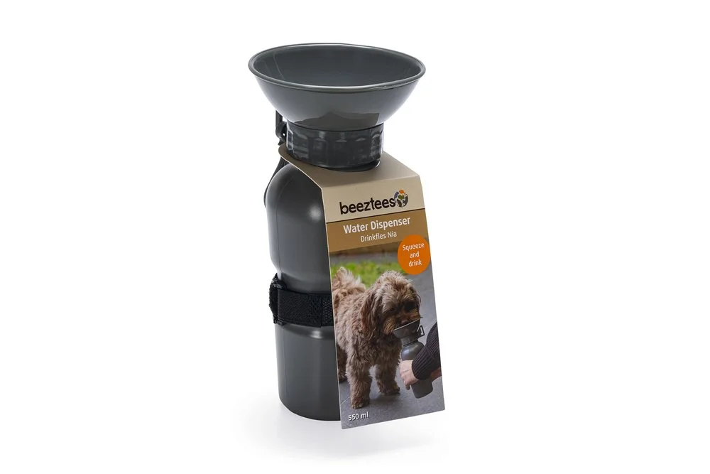 Met de Beeztees Drinkfles Nia kun je altijd schoon drinkwater meenemen voor jouw hond. Deze handige hondendrinkfles is eenvoudig in gebruik en zorgt ervoor dat je hond altijd toegang heeft tot vers water, waar je ook bent. Door in de fles te knijpen, stroomt er water in het drinkbakje bovenop de fles, zodat jouw hond zijn of haar dorst kan lessen. Wanneer je hond genoeg gedronken heeft, hoef je alleen maar te stoppen met knijpen en het resterende water stroomt weer terug in de fles. Dit voorkomt waterverspilling en zorgt ervoor dat je altijd water bij de hand hebt.