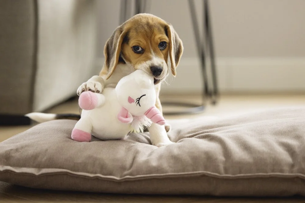 De Beeztees Eenhoorn Owen is een schattige en lieve knuffel die het schattigheidsgehalte van je puppy verhoogt, gevuld met foam voor extra zachtheid en knijpbaarheid, wat prettig is voor de tandjes bij het bijten; hij is ideaal om mee te spelen of om tegenaan te kruipen, en bevat geen piepje, waardoor je geen last hebt van voortdurend gepiep in huis; de afmetingen zijn 18x15x11,5 cm