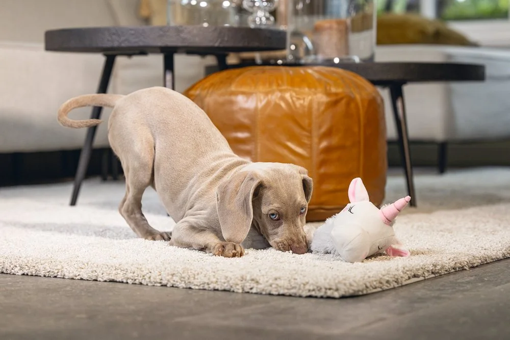 Beeztees Puppy Flatino Unicorn Lo is speciaal ontworpen als puppy speelgoed en knuffel, gemaakt van heerlijk zacht pluche dat je puppy graag zal gebruiken voor zowel spelen als knuffelen; de Flatino heeft een zachte gevulde kop maar geen vulling in het lijfje, en bevat geen piep, waardoor je puppy rustig kan spelen en knuffelen zonder geluid, waardoor urenlang speelplezier gegarandeerd is.