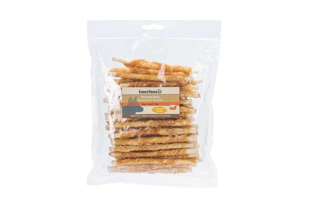 De Beeztees Kauwstaafjes Kip zijn een smakelijke traktatie voor honden. Gemaakt van natuurlijke ingrediënten, zoals runderhuid met laagjes kip, zijn ze onweerstaanbaar voor je viervoeter. Deze kauwsnack biedt niet alleen veel plezier tijdens het kauwen, maar kan ook worden gebruikt als beloning of als tussendoortje. Bovendien zijn ze glutenvrij en vrij van toegevoegde kleur- en smaakstoffen, wat ze een gezonde keuze maakt voor je hond.