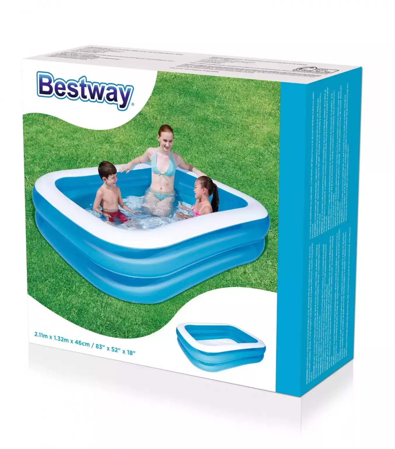 Een zomerlang waterpret voor de hele familie! Het rechthoekige Bestway zwembad heeft een lengte van 262 cm, een breedte van 175 cm en een hoogte van 51 cm.