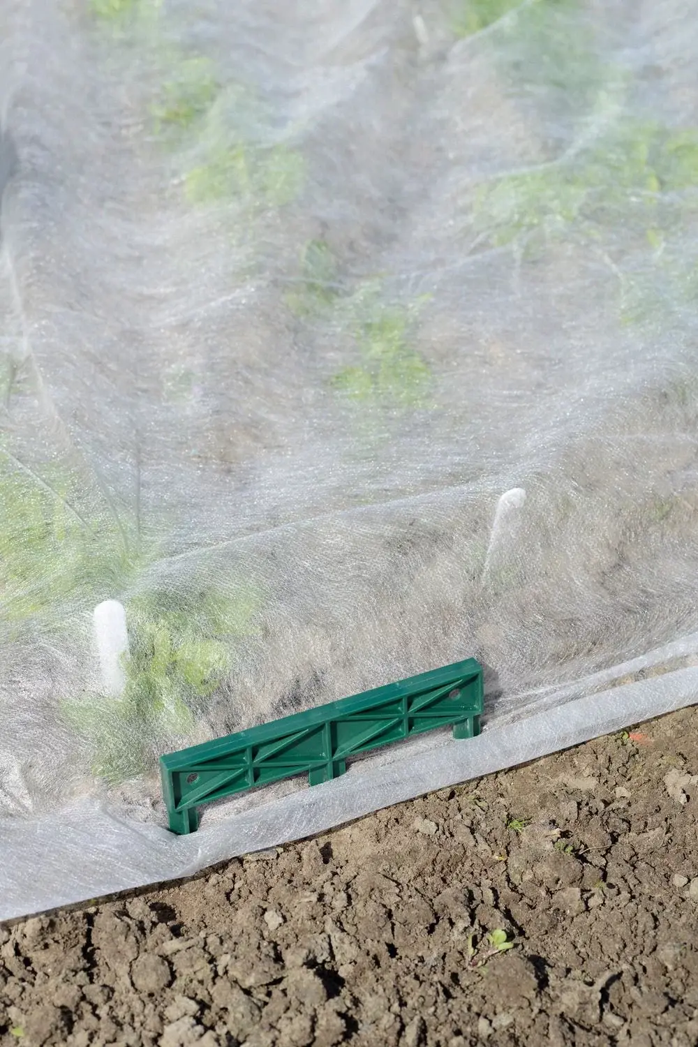 - Eenvoudig te gebruiken: De bevestigingspennen zijn gemakkelijk in de grond te steken en houden uw materialen stevig op hun plaats.