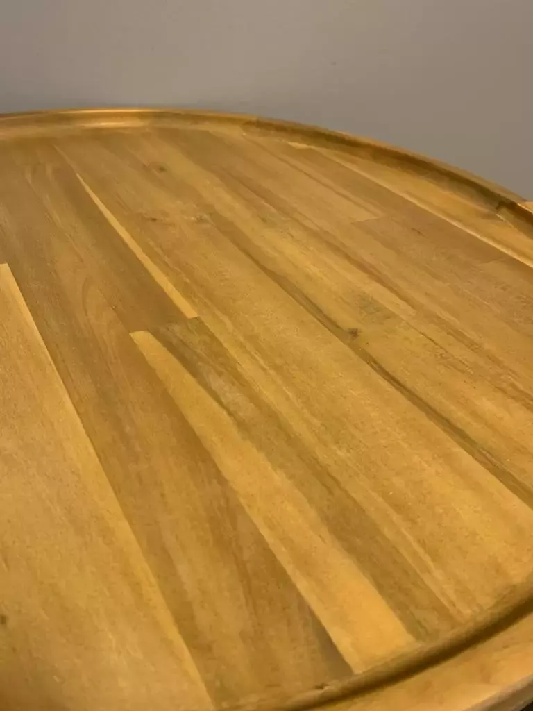 Hardhout soorten zoals teak en acaciahout kenmerkt zich door robuuste, noesten, jaarringen en andere ruwe elementen. Deze hout soorten zijn geschikt voor gebruik binnenshuis en buitenshuis. Wat hierbij belangrijk is om te weten is dat hardhout gaat werken door weersinvloeden. Er gaan dus barstjes en haarscheurtjes ontstaan in meubelen van hardhout. Door het werken van het hout, krijgt de bijzettafel een stoer en uniek uiterlijk.