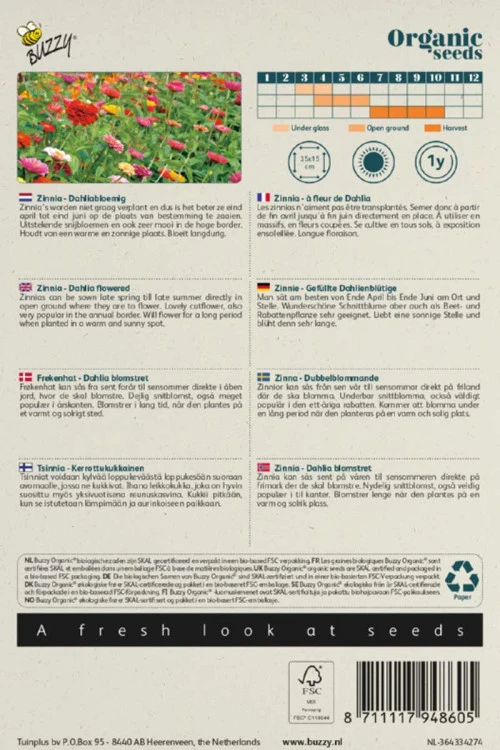 Schrijf zelf een recensie over "Bio zinnia dahliabloemige mix 1.5g"