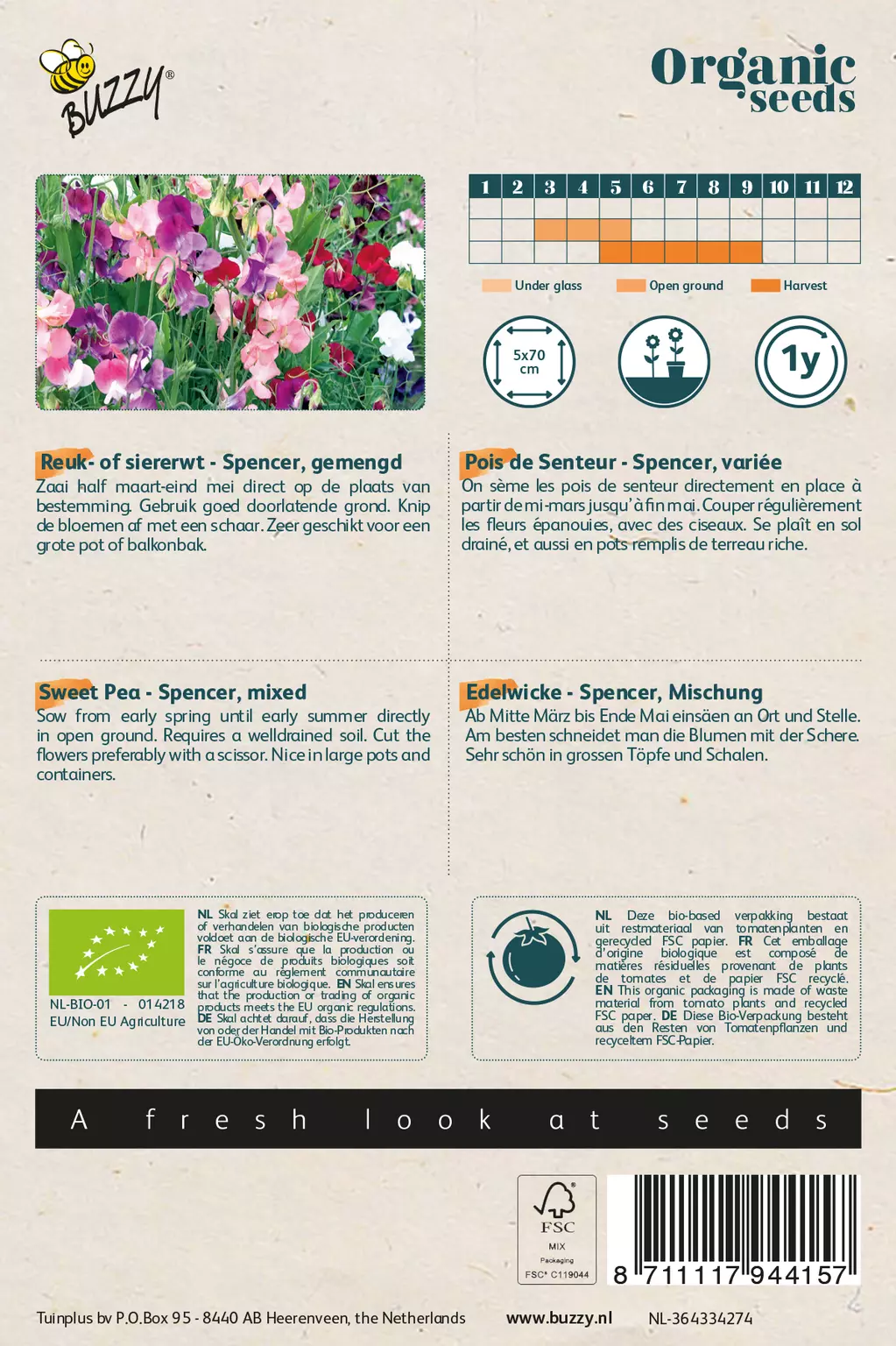 Schrijf zelf een recensie over "Biologische Lathyrus, Reuk- of Siererwt Spencer"