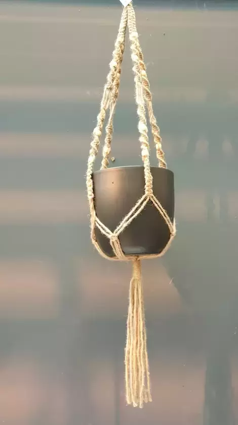 Haal meer groen is huis door deze leuke plantenhanger! De stijlvolle plantenhanger zorgt direct voor meer gezelligheid. De plantenhanger is geschikt om bloempotjes en kruidenplantjes in op te hangen. Hang ze in je woonkamer, slaapkamer, badkamer, tuin, balkon of zelfs op kantoor. Deze plantenhangers zijn een eye-catcher in iedere ruimte. Een plantenhanger is ook leuk om cadeau te geven aan een echte plantenliefhebber! Deze bruine plantenhanger heeft een gedraai patroon en er zitten ook kralen in verwerkt. Door deze kralen heeft de plantenhanger een speels effect. De plantenhanger is 95 cm lang. Vrijwel elke bloempot of bolvormige pot past in de plantenhanger. Let op: de plantenhanger is exclusief bloempot!
