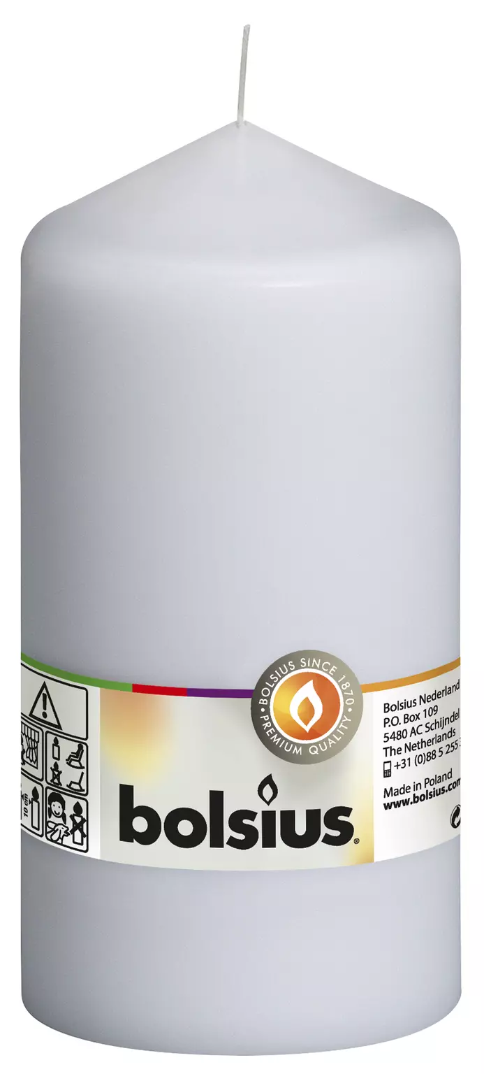 Prima witte Bolsius stompkaars 150/80 voor gezellige en sfeervolle avonden in uw woning of tuin. Deze Bolsius kaarsen branden perfect op, hebben een lange brandduur en roeten niet