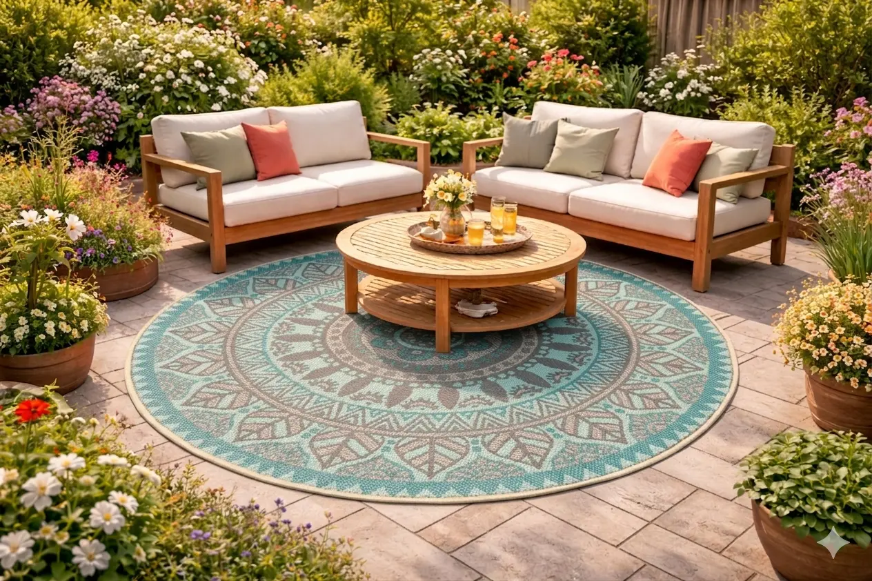 Maak van je tuin een verlengstuk van je woonkamer met dit prachtige ronde buitenkleed. Het kleed is voorzien van een verfijnd patroon in frisse kleuren. Of je nu een knusse zithoek wilt creëren of je loungeset wilt opvrolijken, dit kleed biedt direct comfort en een moderne look. Het materiaal is duurzaam en eenvoudig te reinigen, waardoor het uitermate geschikt is voor intensief buitengebruik.