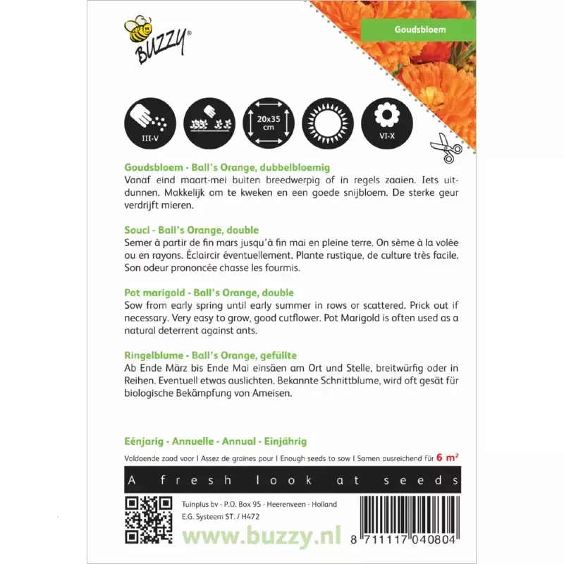 Schrijf zelf een recensie over "Calendula, Goudsbloem Ball’s Orange dubbelbloemig"