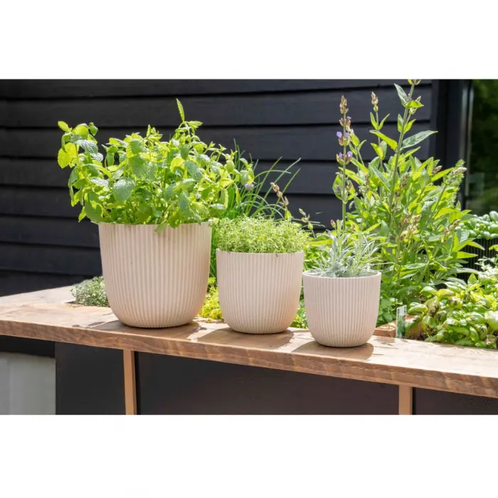 Deze pot uit onze 'Made with'-collectie is gemaakt van gerecycled materiaal. Capi Europe is een vooraanstaand Nederlands bedrijf dat prachtige binnen- en buitenpotten produceert, volledig klimaatneutraal. De potten in deze collectie worden gemaakt met behulp van textiel, zaagsel of kunstgras, waarbij elke pot zijn eigen unieke verhaal vertelt. Deze Beige pot is specifiek gemaakt met zaagsel, waardoor hij een Beige/wit kleur krijgt. Bovendien zijn de potten verkrijgbaar in verschillende maten (13x12 en 16x15) en kleur, gras groen