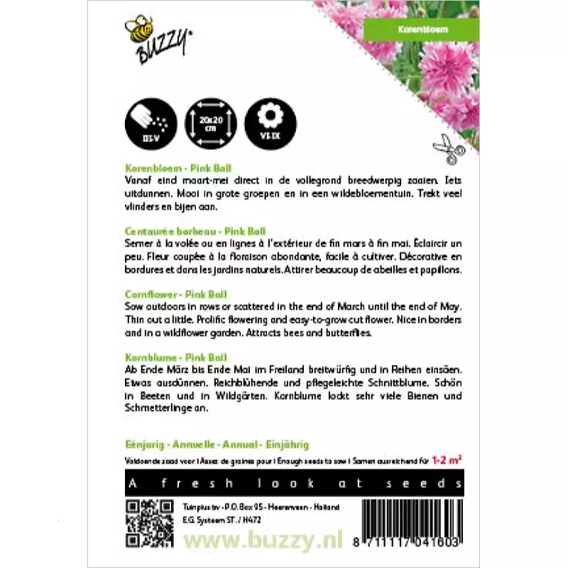 Schrijf zelf een recensie over "Centaurea, Korenbloem Pink Ball"