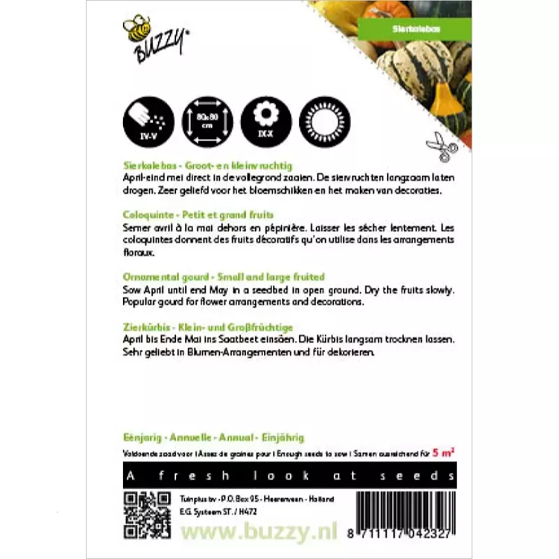 Sierkalebassen_x005F_x000D_ Vanaf april tot eind mei buiten zaaien. De siervruchten langzaam laten_x005F_x000D_ drogen. Zeer geliefd bij het bloemschikken en het maken van decoraties._x005F_x000D_