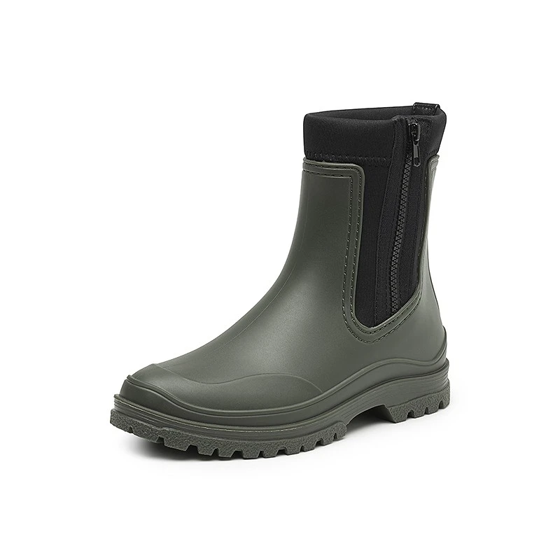 Dameslaars Jill, in groen PVC, maat 40, is een enkellaars die zowel praktisch als comfortabel is. Het heeft een handige rits voor gemakkelijk aan- en uittrekken. De toevoeging van neopreen rondom de enkel zorgt voor flexibiliteit, waardoor het met elke beweging van de gebruiker meerekt.