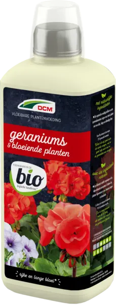 Geef je bloeiende planten de beste verzorging en geniet van een uitbundige, kleurrijke tuin met DCM Vloeibare Plantenvoeding Geraniums & Bloeiende Planten!