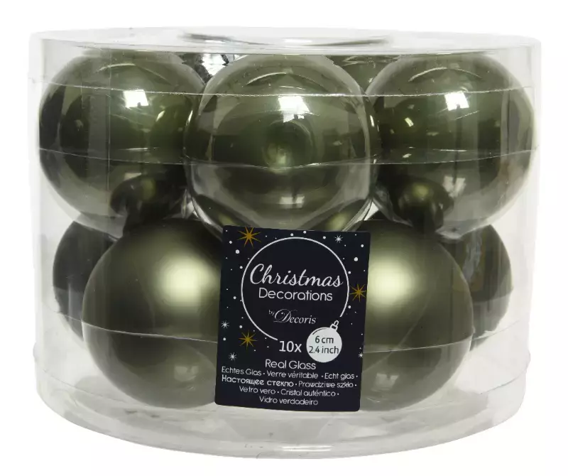 Schrijf zelf een recensie over "Decoris kerstballen glas 10st mos groen 6cm"