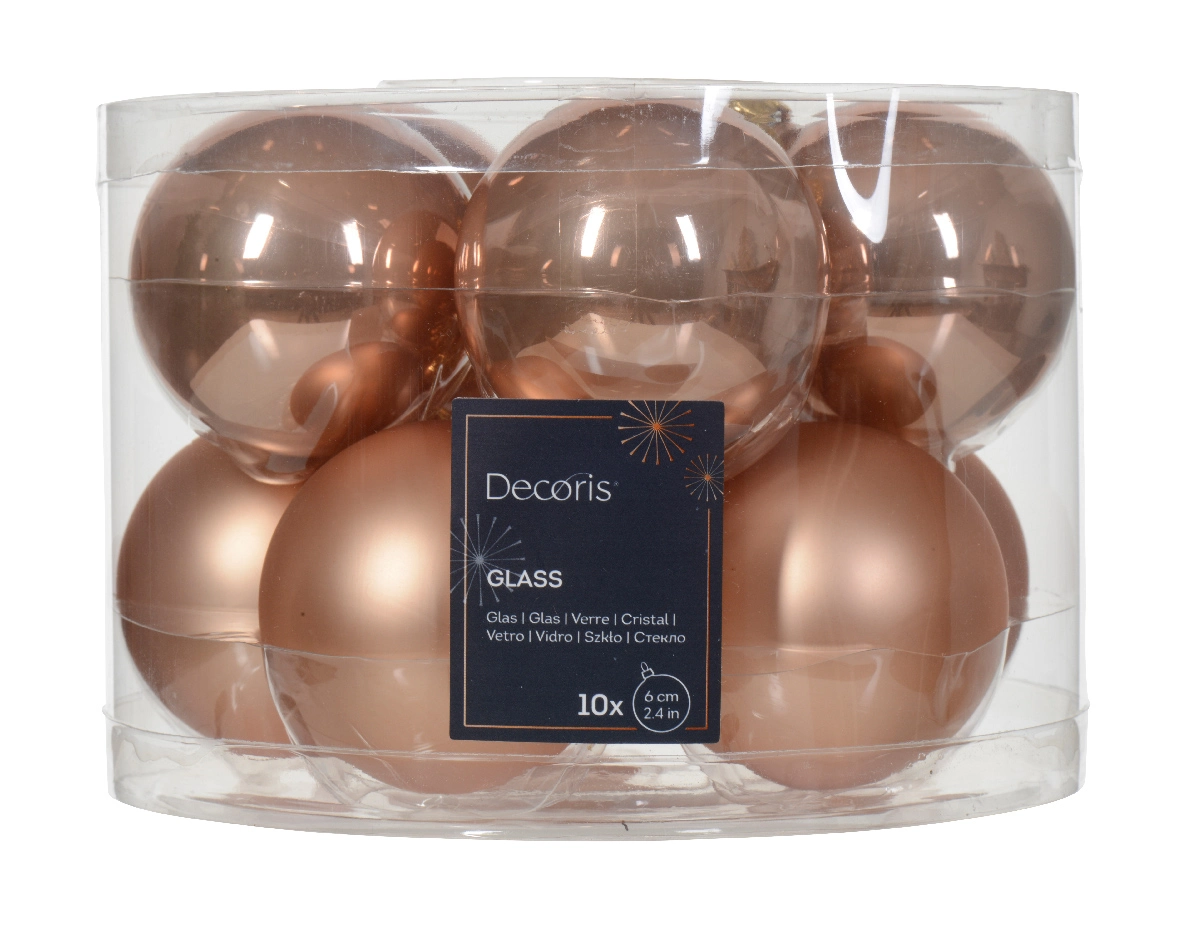 Voeg een speelse en romantische sfeer toe aan je kerstboom met de roze kerstballen van Decoris. Deze glazen ballen van 6 cm hebben een zachte, roze tint die een charmante en vrolijke uitstraling geeft. De set van 10 ballen heeft een mix van matte en glanzende afwerkingen, wat zorgt voor een mooi en veelzijdig effect. Perfect voor een elegante en vrouwelijke kerstversiering.