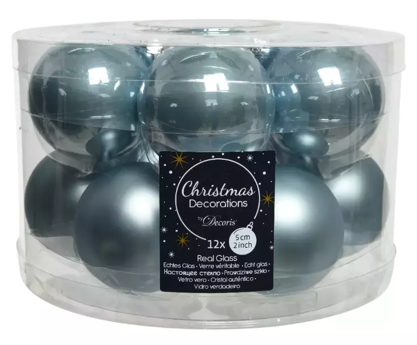 Breng een koele en frisse uitstraling naar je kerstboom met de blauwe kerstballen van Decoris. Deze glazen ballen van 5 cm in diameter hebben een levendige blauwe kleur die zorgt voor een feestelijke en vrolijke sfeer. De set van 12 stuks bevat 6 glanzende en 6 matte ballen, wat zorgt voor een dynamische en sfeervolle decoratie. De blauwe kleur is ideaal voor een kleurrijke kerstversiering die je boom een levendige en frisse uitstraling geeft.