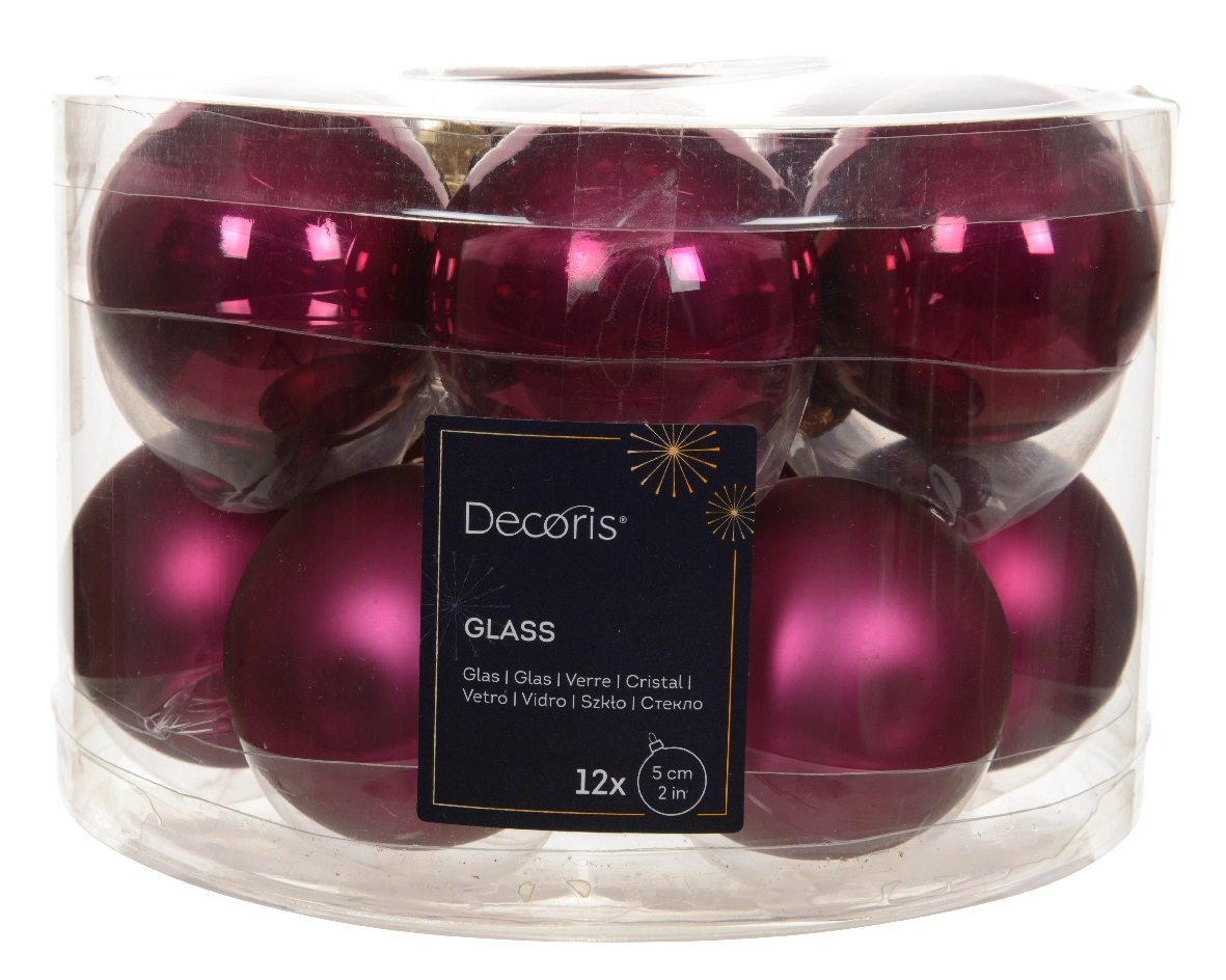Voeg een rijke en feestelijke tint toe aan je kerstboom met de granaatappel kerstballen van Decoris. Deze glazen ballen van 5 cm in diameter hebben een luxe granaatappelkleur die zorgt voor een elegante en sfeervolle uitstraling. De set van 12 stuks bevat 6 glanzende en 6 matte ballen, wat zorgt voor een dynamisch en verfijnd effect. De granaatappelkleur is perfect voor een feestelijke en luxe kerstversiering die je boom een opvallende en warme uitstraling geeft.