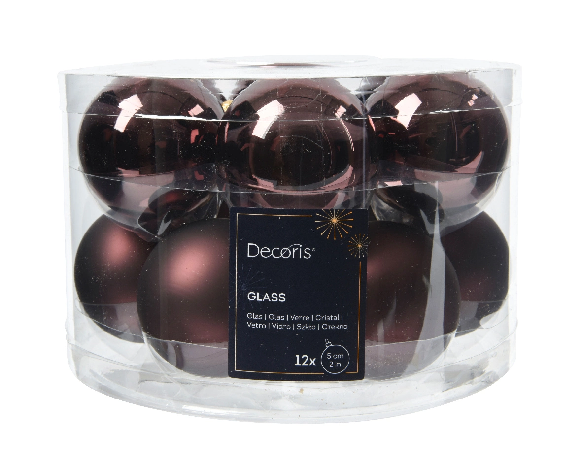 Decoris kerstballen Glas 12st zwarte truffel 5cm