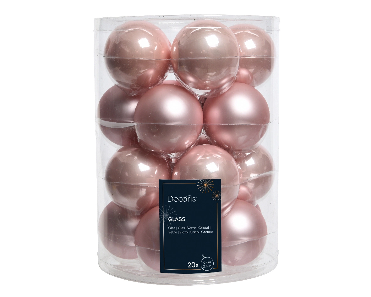 Schrijf zelf een recensie over "Decoris kerstballen Glas 20st poederroze 6cm"