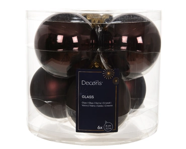 Decoris kerstballen Glas 6st espresso 8cm