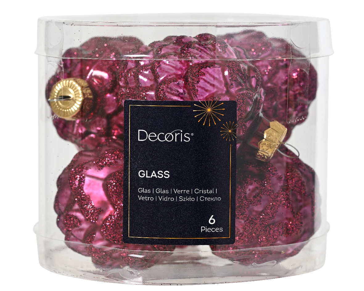 Decoris Kerstballen glas dennenappel 6st Granaatappel 5x7cm