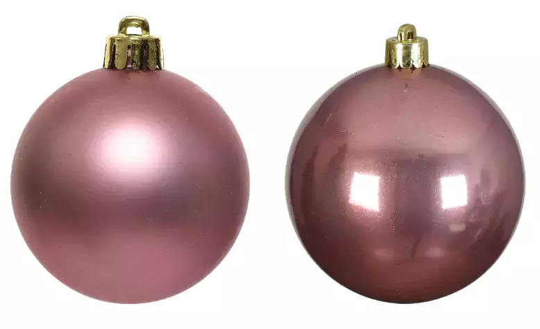 Deze glazen kerstballen in de kleur veloursroze van Decoris brengen een gezellige kerstsfeer met zich mee.