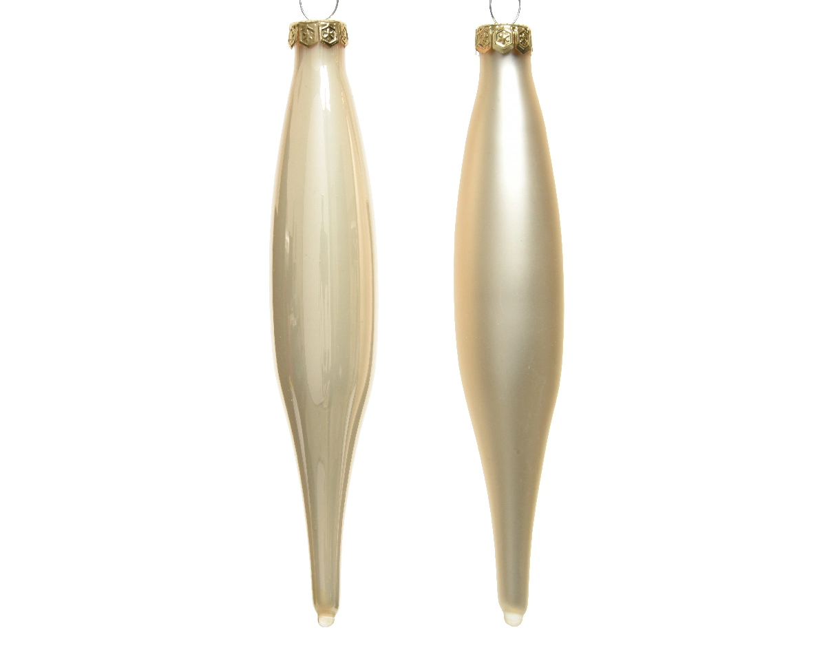 Breng een vleugje tijdloze elegantie naar je kerstdecoratie met deze schitterende kerstballen van Decoris. Deze set bestaat uit 6 grote glazen kerstballen in een verfijnde parelkleur, elk met een indrukwekkende lengte van 15 cm. De elegante ijspegelvorm voegt een luxe en sprankelende afwerking toe aan je kerstboom, waardoor je decoratie een klassieke en feestelijke uitstraling krijgt.