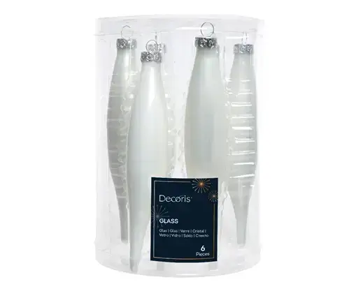 Schrijf zelf een recensie over "Decoris kerstballen Ijspegel glas 6st winterwit 15cm"