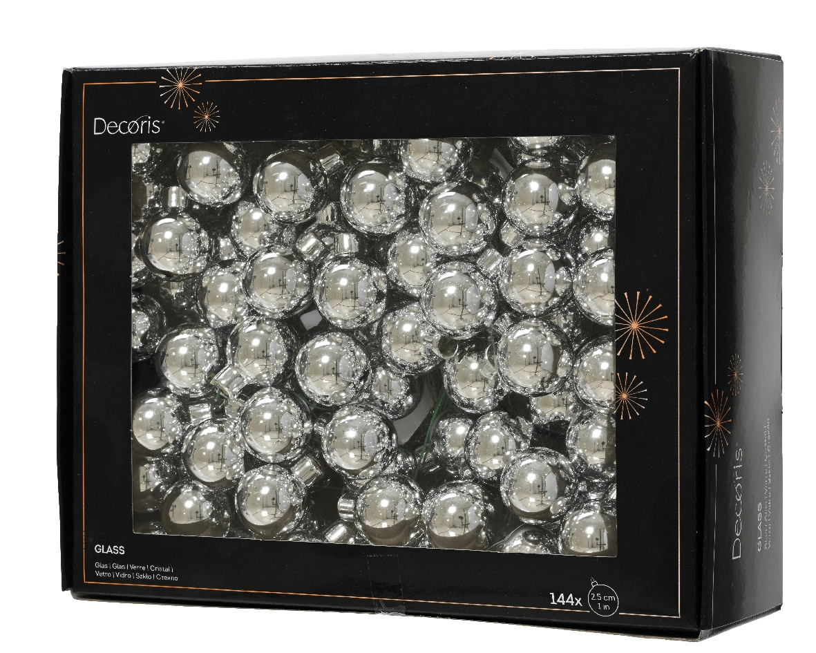 Decoris kerstballen op draad Glas 144st zilver 2,5cm