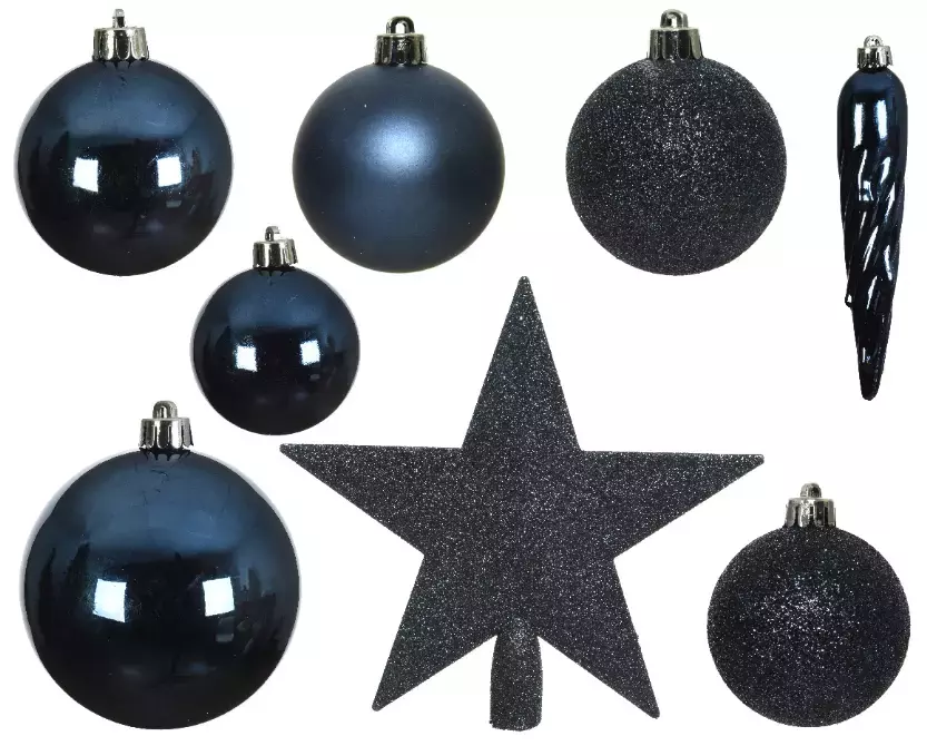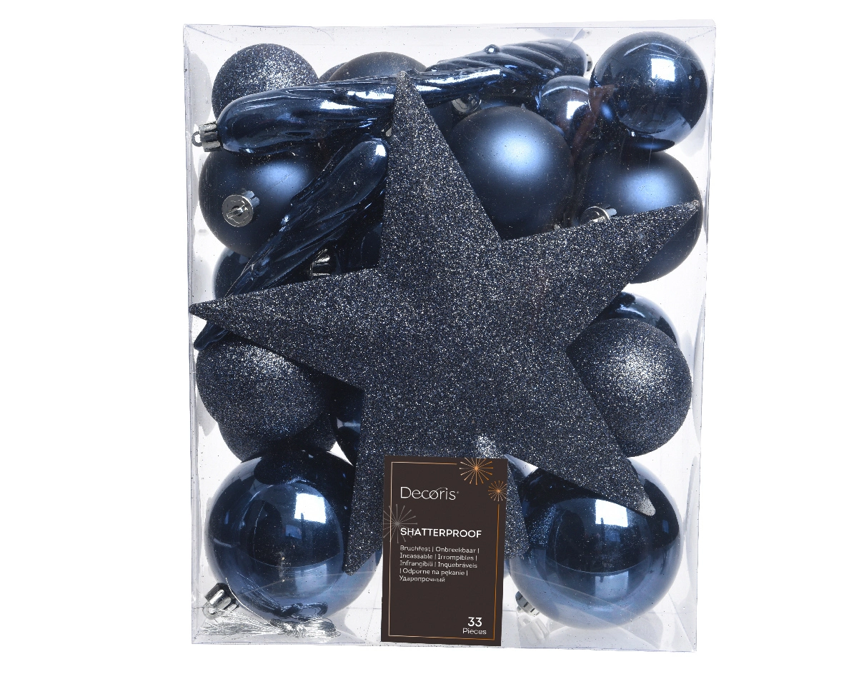 Decoris Kerstballen Plastic mix+piek 33st nachtblauw