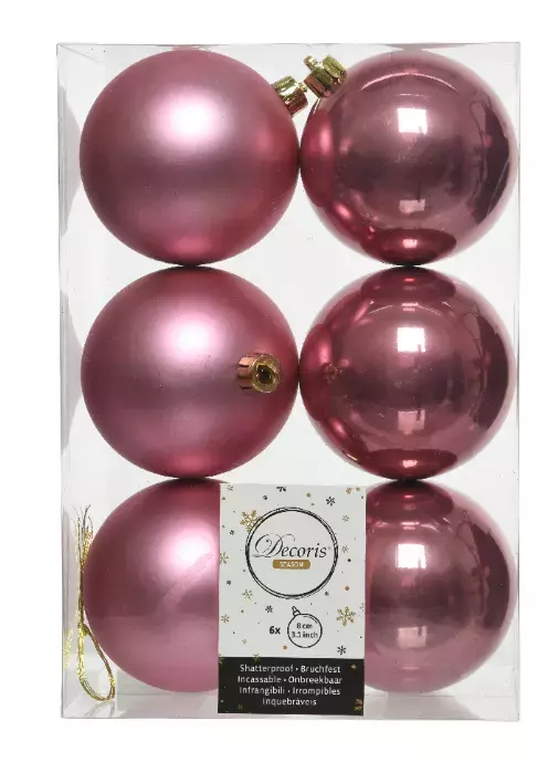 Schrijf zelf een recensie over "Decoris kerstballen plastic set roze 8cm 6st"