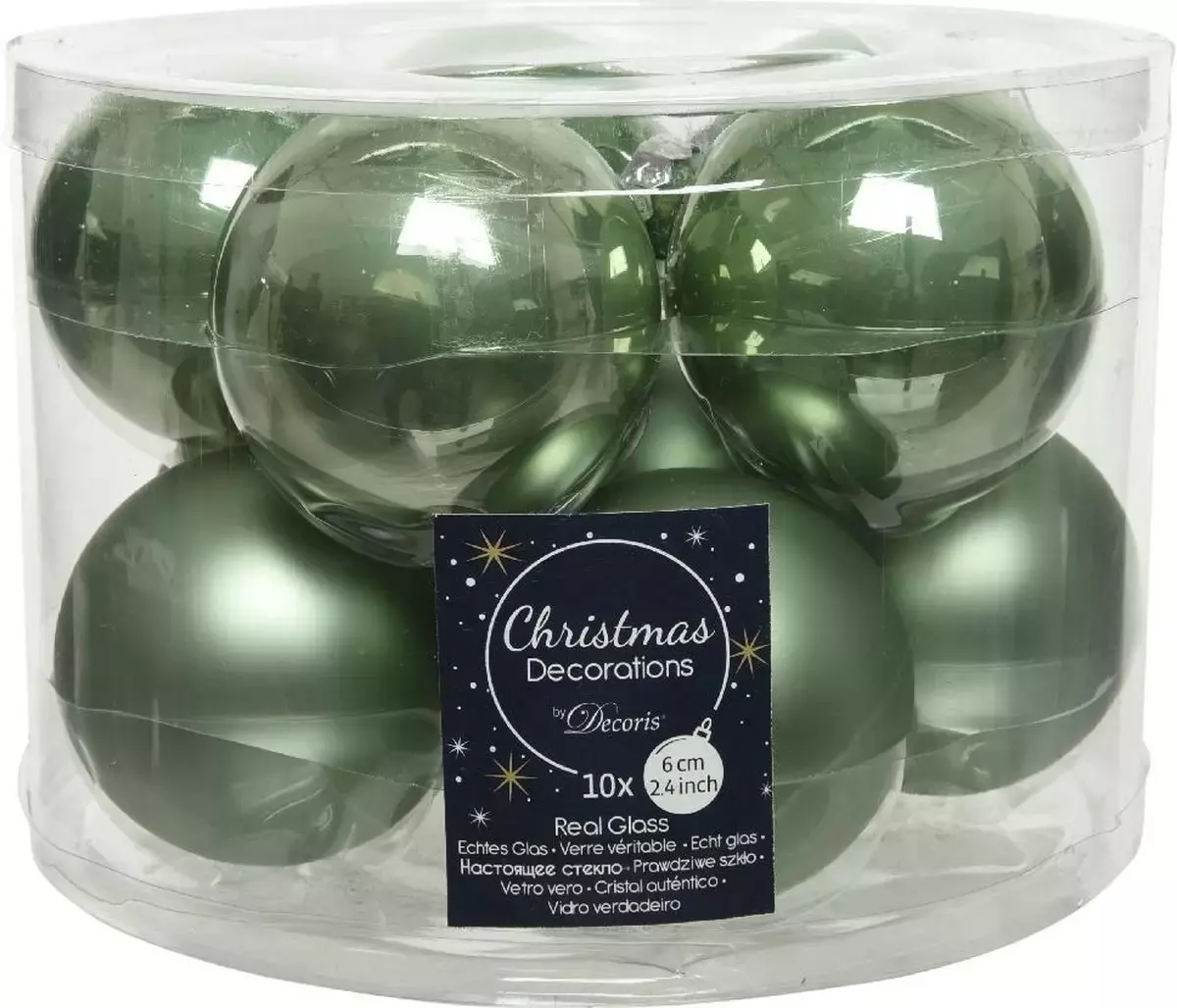 Schrijf zelf een recensie over "Decoris kerstballen saliegroen glas 6cm 10st"