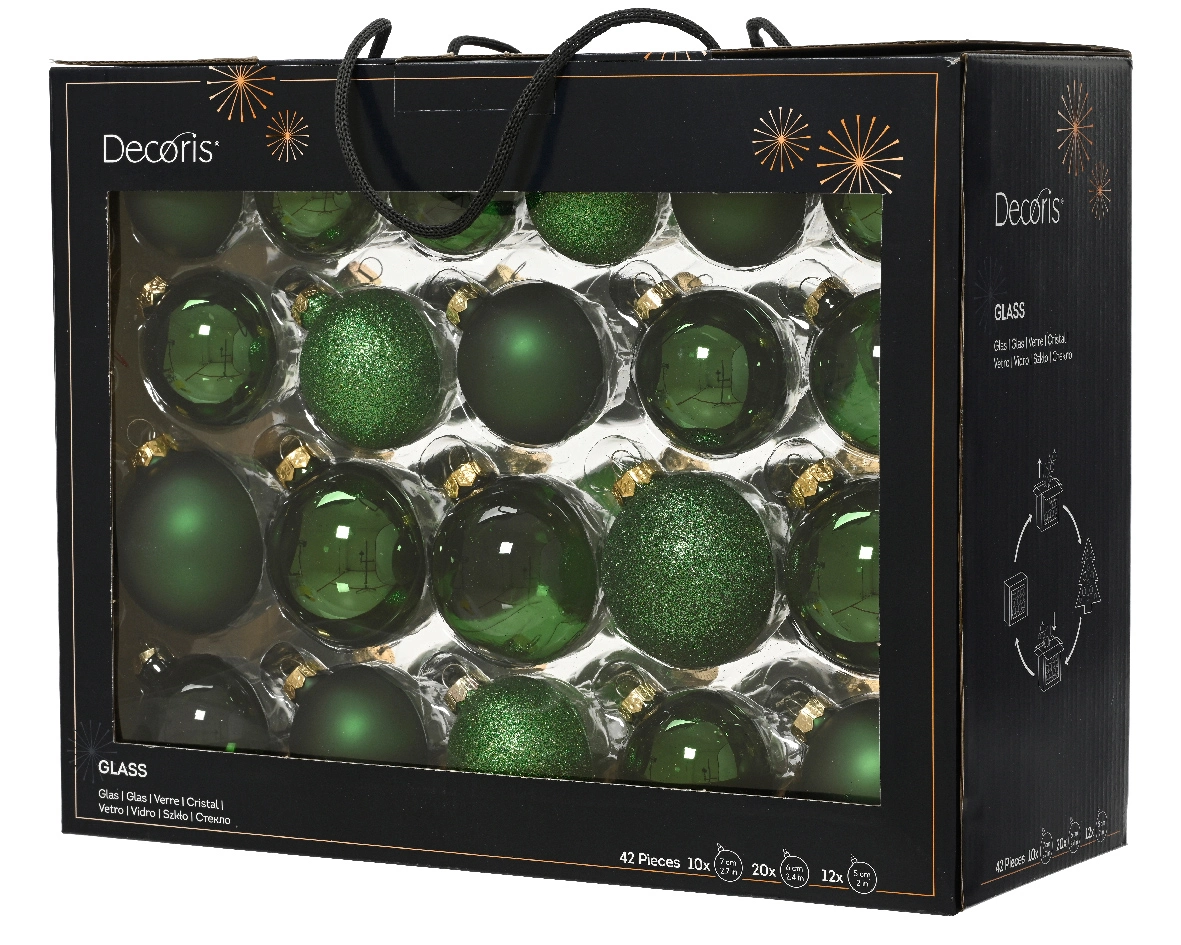 Schrijf zelf een recensie over "Decoris kerstballen set Glas 42st dennengroen 5-6-7cm"