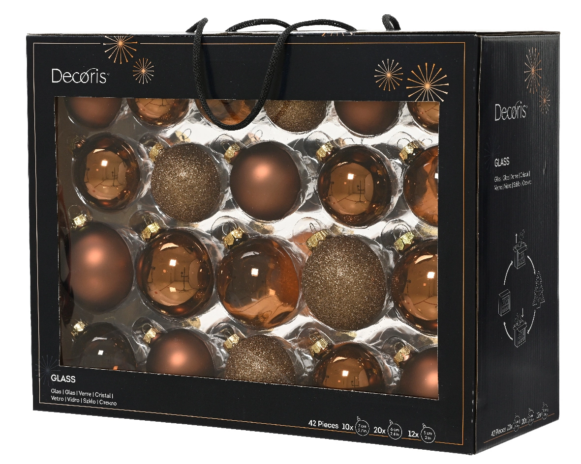 Schrijf zelf een recensie over "Decoris kerstballen set Glas 42st espresso 5-6-7cm"