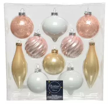 De set wordt geleverd in een handige doos, ideaal voor veilige opslag en gemakkelijk gebruik. Ontdek ook onze andere kleurvarianten voor een persoonlijke touch aan je kerstdecoraties.