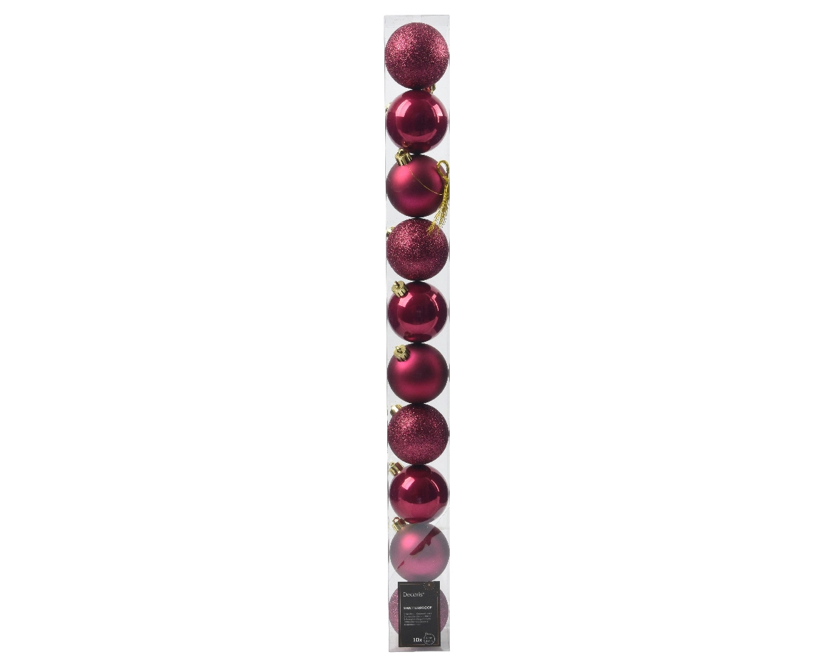 Voeg een vleugje exotische luxe toe aan je kerstdecoratie met de Decoris Kerstballen Set in een opvallende granaatappel kleur. Deze set van 10 kerstballen, elk 6 cm in diameter, zorgt voor een opvallende en feestelijke sfeer in je boom. De ballen zijn gemaakt van stevig kunststof, wat ze ideaal maakt voor langdurig gebruik, zelfs in een huishouden met kinderen of huisdieren. De variëteit aan afwerkingen—glanzend, mat en glitter—geeft je kerstboom een levendige en stralende uitstraling.