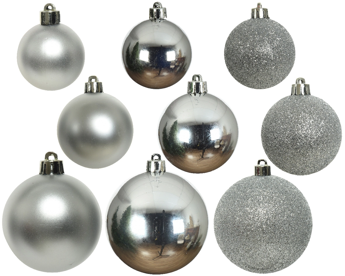 Decoris kerstballen set Plastic 26st zilver 6-8-10cm