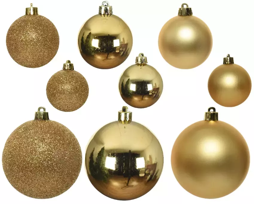 Mix van 30 gouden kerstballen variërend in grote van 4, 5 en 6cm. Met deze mix heb je gelijk een leuke toevoeging aan je boom!