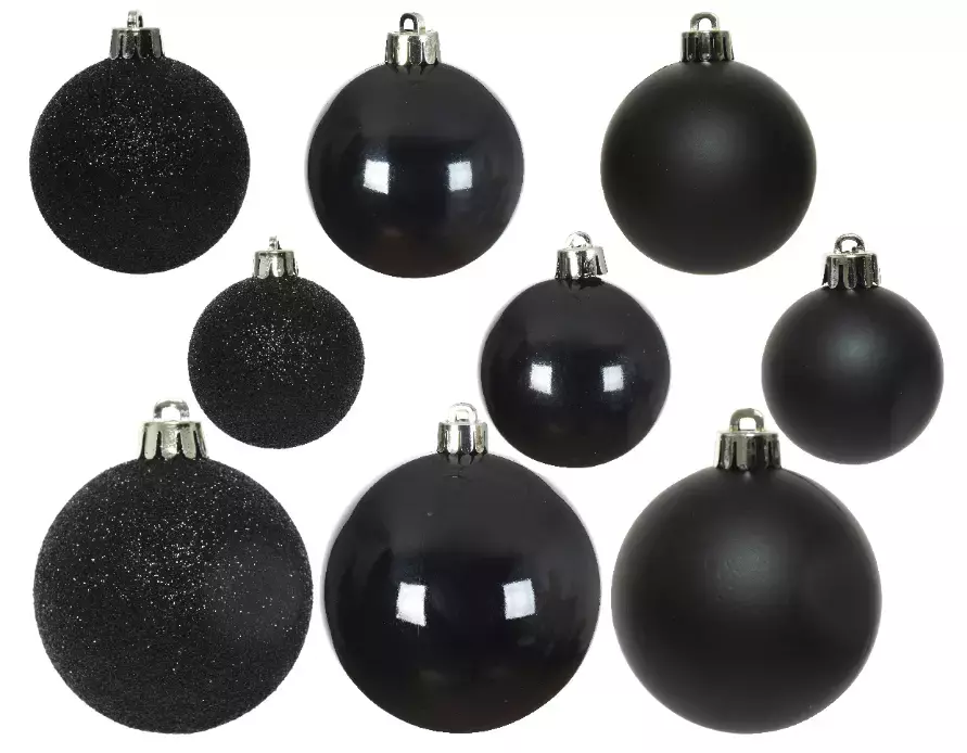 Schrijf zelf een recensie over "Decoris kerstballen set Plastic 30st Zwarte 4-5-6cm"
