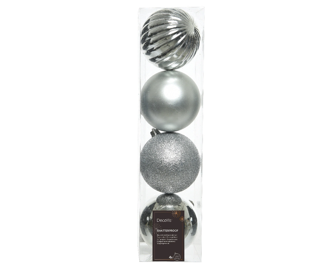 Decoris kerstballen set Plastic 4st Zilver 10cm