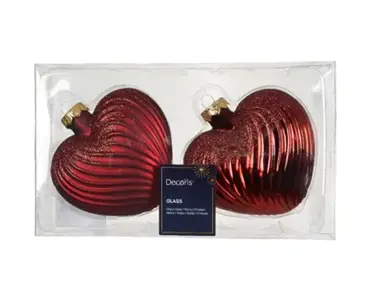 Schrijf zelf een recensie over "Decoris kersthangers glas hart 2st kerstrood"