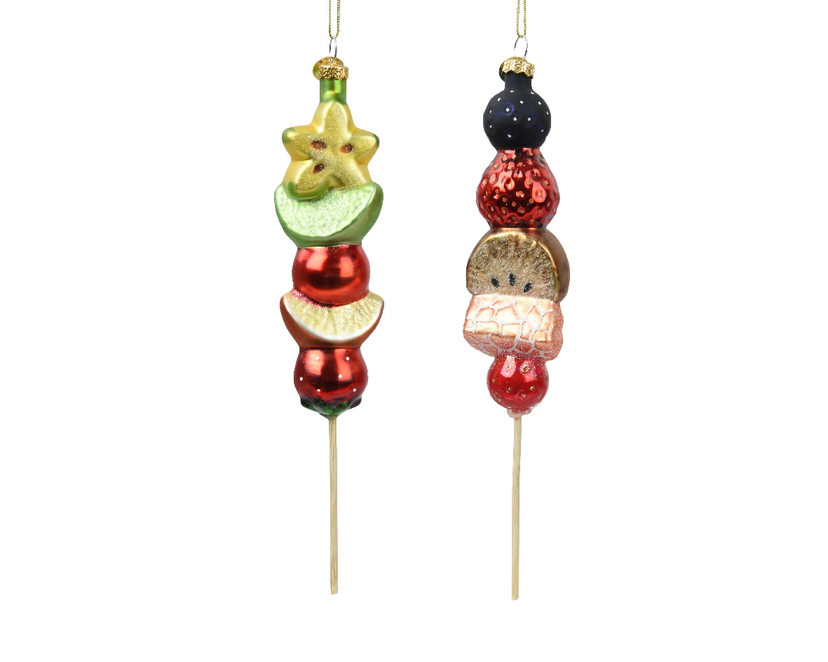Voeg een sprankelende en frisse touch toe aan je kerstboom met het Decoris Kerstornament in de vorm van fruit op een stok. Dit ornament van 19 cm is gemaakt van glas en heeft een charmant ontwerp waarbij verschillende soorten fruit worden gepresenteerd op een decoratieve stok. Het is een feestelijke en kleurrijke aanvulling voor je kerstdecoratie.