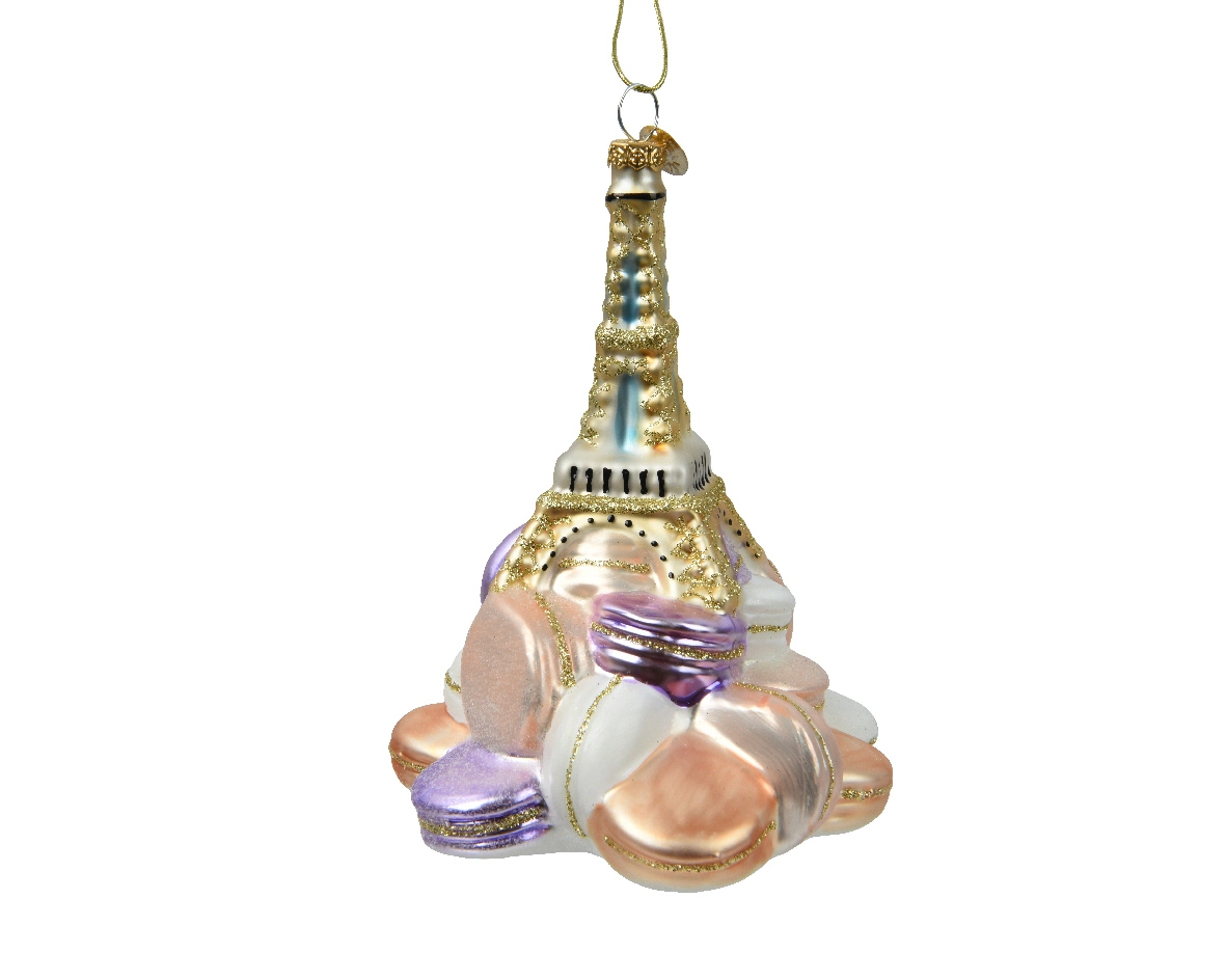 Decoris kerstornament glas Macarons eiffeltoren 13,7cm