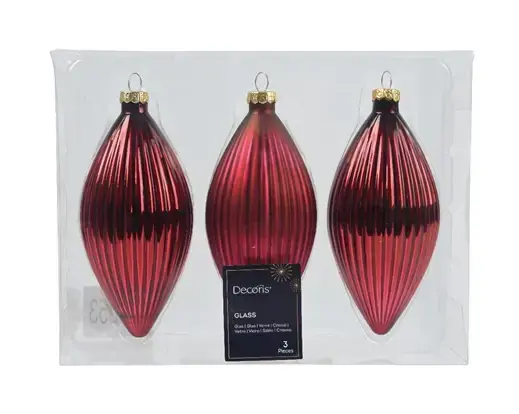 Schrijf zelf een recensie over "Decoris kerstornament glas olijf 3st ossenbloed 13cm"